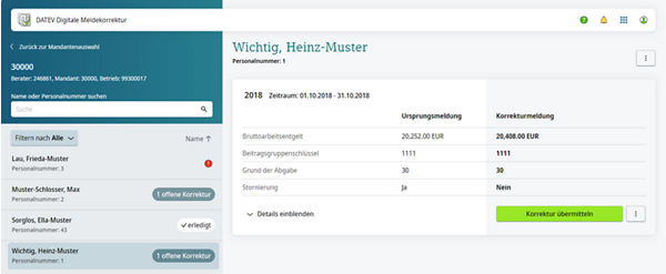 Um die Anwendung zu nutzen, müssen Sie lediglich die Rechte für DATEV Digitale Meldekorrektur in Rechteverwaltung online freischalten.