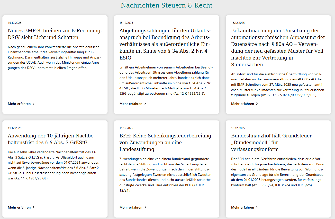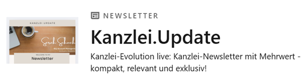 Bleiben Sie jederzeit informiert über wichtige Neuerungen, Fachinformationen und Praxisbeispiele aus der Kanzlei- und Unternehmenswelt. Klicken Sie einfach auf das obige Bild, um direkt zu den aktuellen Meldungen zu gelangen – und speichern Sie sich die Seite als Favorit ab. So haben Sie Ihren täglichen Überblick immer nur einen Klick entfernt.