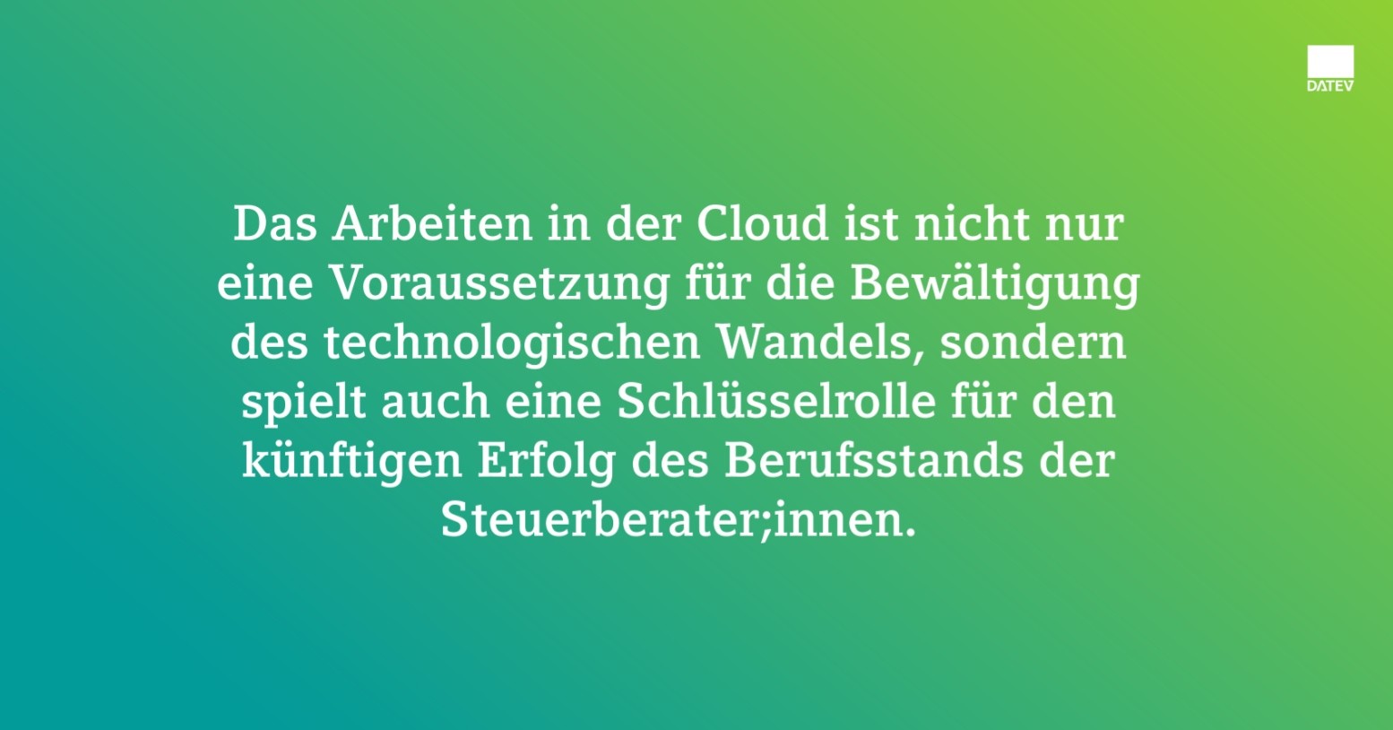 Im kommenden Jahr begleiten wir Sie mit dem neuen DATEV Umstellungscockpit noch gezielter auf Ihrem Weg in die Cloud und führen Sie transparent und sicher durch alle notwendigen Schritte. Zudem können Sie sich auf zahlreiche neue Cloudlösungen und Erweiterungen freuen – vom Kanzleimanagement über MyDATEV Kanzlei bis hin zu neuen Funktionen in DATEV Personal, der DATEV E-Rechnungsplattform und weiteren Fachanwendungen.