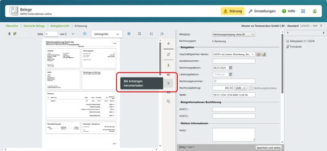 Bei E-Rechnungen (XRechnungen Sie jetzt die in der XML-Datei eingebetteten Anlagen – z. B. Stundenzettel – direkt aus Unternehmen online gemeinsam herunterladen. Im Viewer lassen sich diese Anlagen nun zusammen mit der Rechnung exportieren. Was bisher bei XRechnungen nur eingeschränkt möglich war, ist jetzt deutlich komfortabler und effizienter.