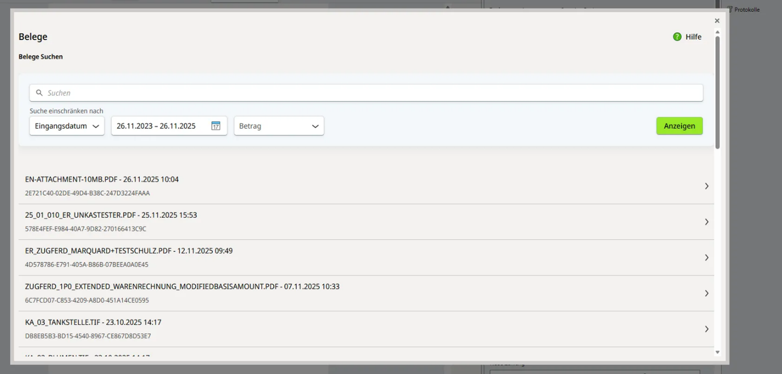 Durch die Ablösung älterer technischer Komponenten wurden in Belege online mehrere Bereiche modernisiert und übersichtlicher gestaltet:
