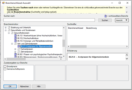- Unter Stammdaten | Mandantendaten | Unternehmen/Vereinigung | Unternehmensdaten den richtigen Branchenschlüssel