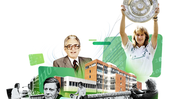 1969 weihen wir unser erstes eigenes Rechenzentrum ein. Bundesfinanzminister Franz Josef Strauß höchstpersönlich drückt den Startknopf. Vier IBM-Großrechner mit zusammen 320 Kilobyte Speicher machen uns sofort zum digitalen Schwergewicht. Heute reicht diese Kapazität nicht einmal für ein Handy-Urlaubsfoto.