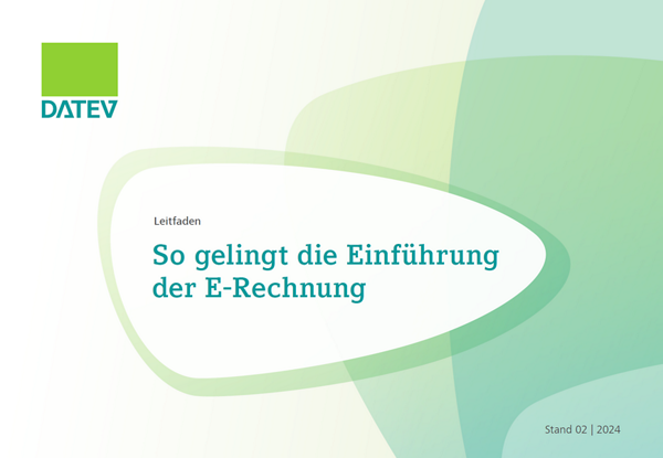Nehmen Sie die E-Rechnungspflicht zum Anlass, Ihre Prozesse rechtzeitig zu optimieren. Mit dem vorliegenden Leitfaden unterstützt DATEV bei der erfolgreichen Einführung der elektronischen Rechnung in Ihrer Kanzlei und bei Ihren Mandanten. Dieser beinhaltet zudem entsprechende Schulungs- und Beratungsangebote.