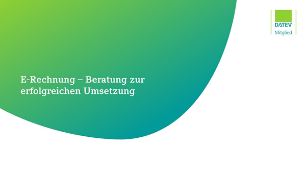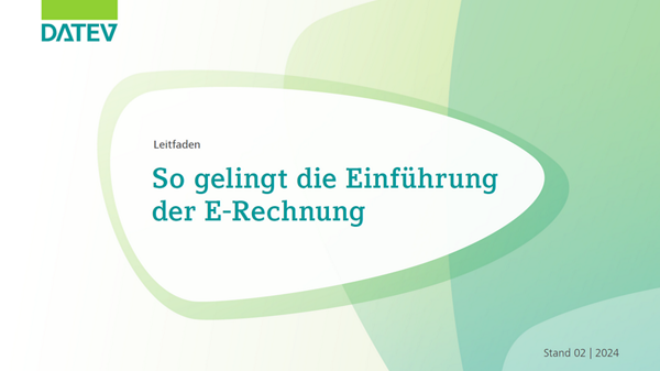 Nehmen Sie die E-Rechnungspflicht zum Anlass, Ihre Prozesse rechtzeitig zu optimieren. Mit dem vorliegenden Leitfaden unterstützt DATEV bei der erfolgreichen Einführung der elektronischen Rechnung in Ihrer Kanzlei und bei Ihren Mandanten. Dieser beinhaltet zudem entsprechende Schulungs- und Beratungsangebote.