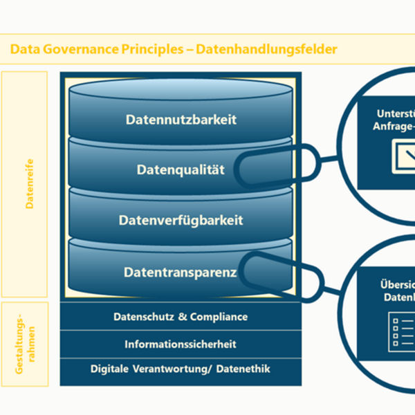 DATEV weiß um die zukunftsweisende Bedeutung von Daten für Prozessautomatisierung und effiziente Arbeit der DATEV-Mitglieder. Aus diesem Grund verfolgen wir Data Excellence, die mithilfe der der Data Governance Principles erreicht werden soll. Durch die Data Governance Principles soll der Wert der Daten maximiert werden, unter der Einhaltung der rechtlichen und moralischen Grenzen. Im Rahmen dessen wurden sieben Prinzipien formuliert, die zu einem wertorientierten und wertschöpfenden Umgang mit Daten beitragen.