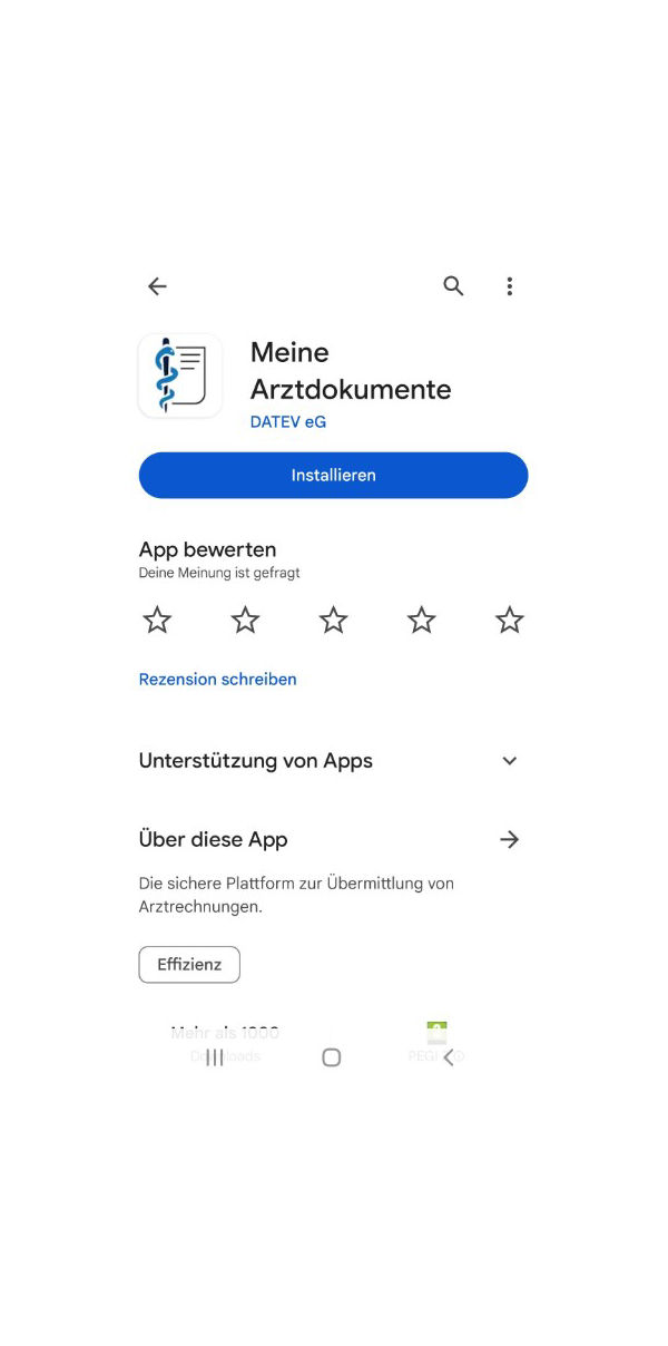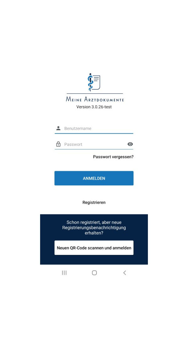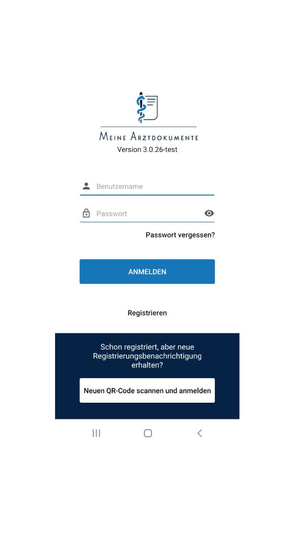 Schritt 1 - Meine Arztdokumente App aus dem App Store (iOS) oder Play Store (Android) herunterladen und die App öffnen