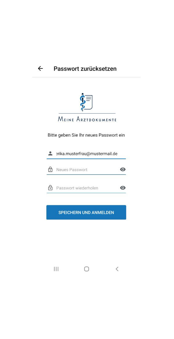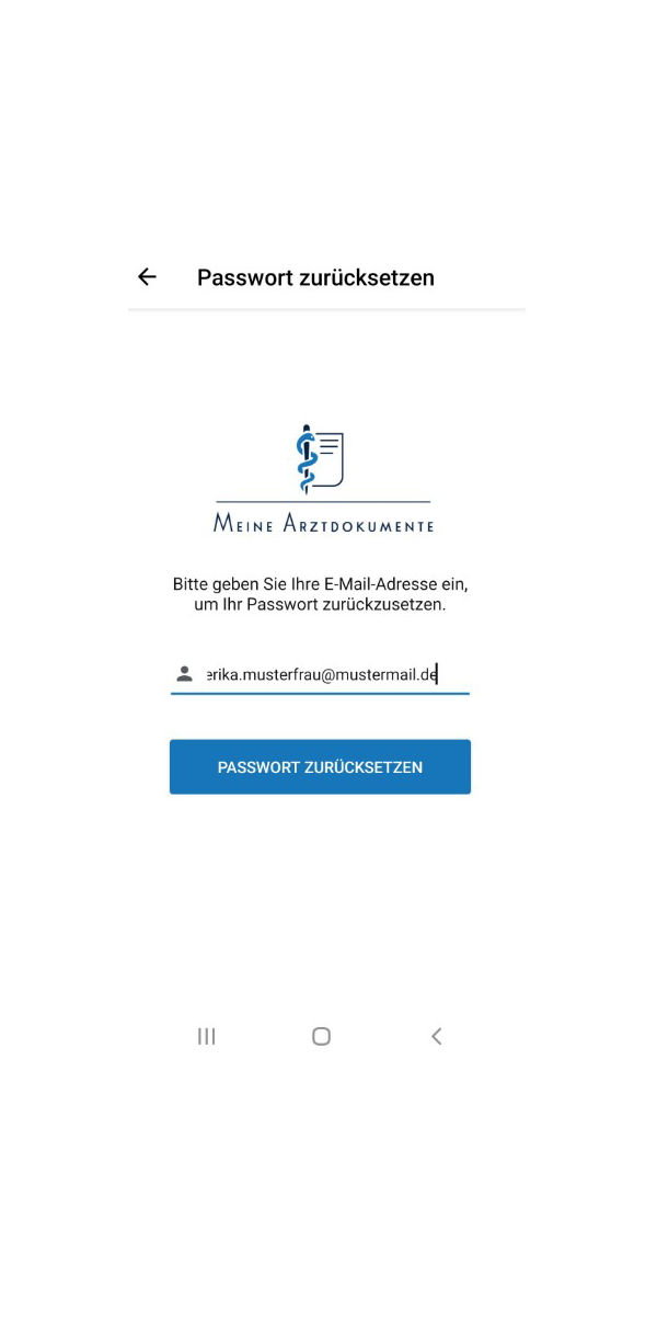 Anleitung für das Zurücksetzen Ihres Passwortes für Meine Arztdokumente.