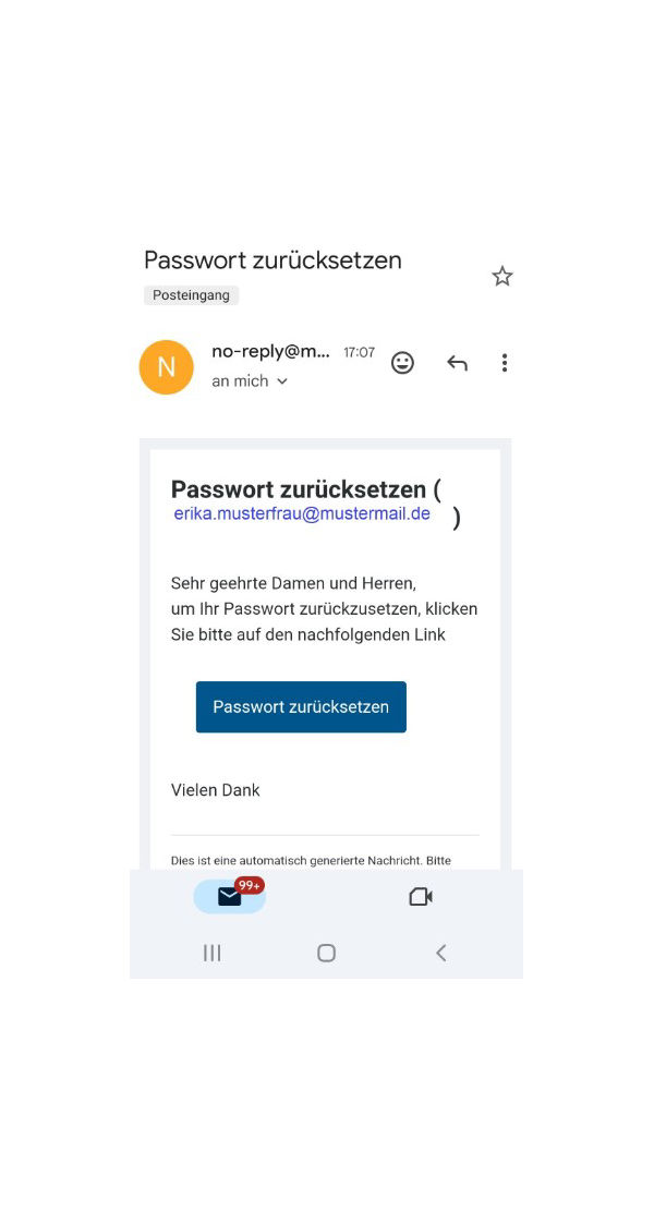 In der erhaltenen E-Mail auf den Button "Passwort zurücksetzen" klicken.