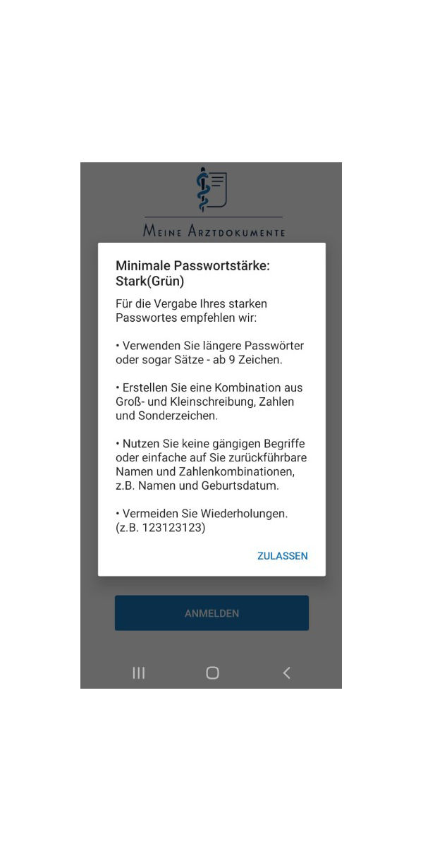 Eine Verwendung des Portals meine-arztdokumente.de ist ohne Zweifaktorauthentifizierung aus identischen Gründen nicht möglich.