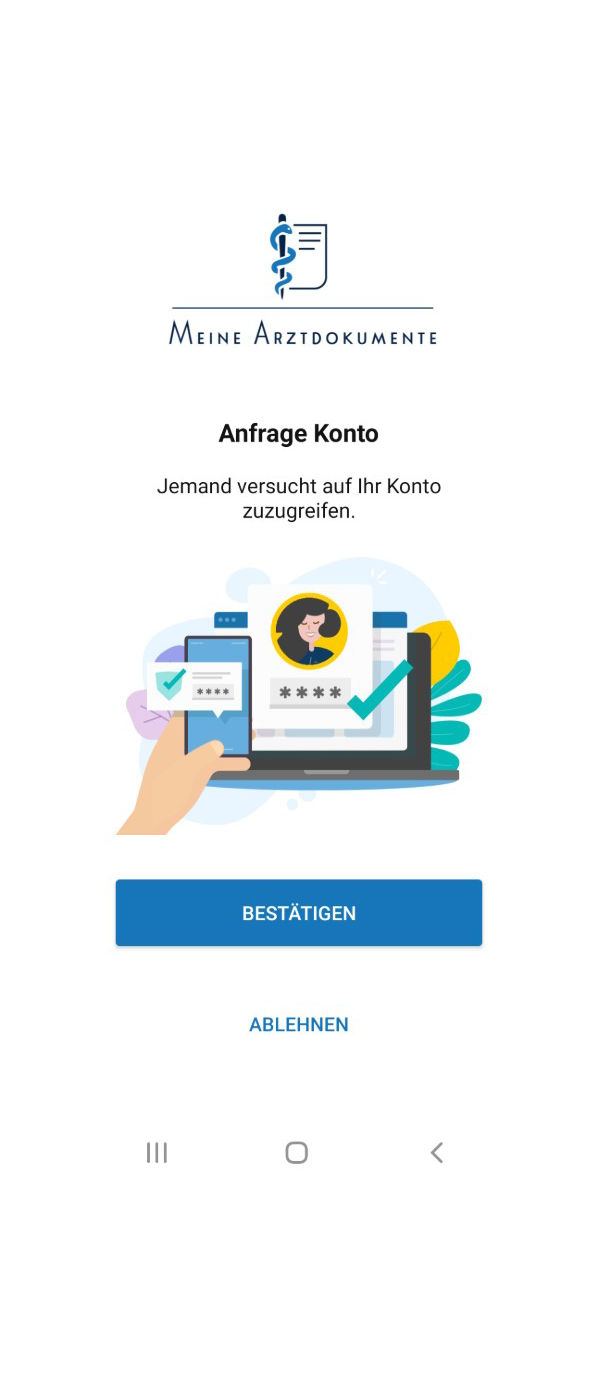 Wenn Sie ein neues Mobilgerät für die Verwendung von Meine Arztdokumente einrichten möchten, müssen Sie dieses zunächst als vertrauenswürdiges Gerät festlegen.