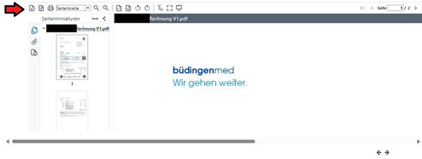 - Klicken Sie auf den Pfeil-Button ("herunterladen") rechts neben der Voransicht der Rechnung.