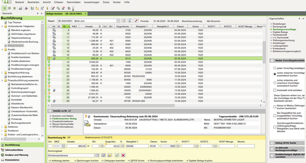 Automatisch gebuchte Buchungsvorschläge werden durch entsprechende Symbole in der Spalte AS kenntlich gemacht. Dies erleichtert die Kontrolle.