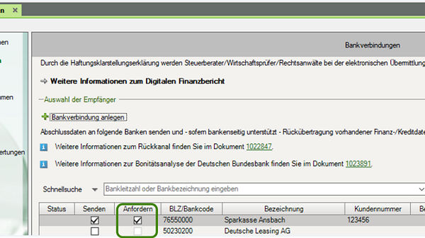 - Kanzlei-Rechnungswesen | Jahresabschluss | Abschließende Tätigkeiten | Abschlussdaten an Banken senden