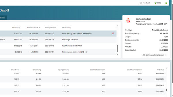 Diese Übersicht ermöglicht Ihnen jederzeit einen digitalen Zugriff auf wichtige Vertragsdaten, die Sie zur Buchung der Kredite (z. B. Zins- und Tilgungspläne) oder zur Beratung (z. B. Zinsbindungsende) benötigen. Damit haben Sie die Möglichkeit, im unterjährigen Controlling noch zeitnäher und individueller zu beraten. Sie können frühzeitig reagieren, wenn das Zinsbindungsende ansteht, und decken zeitnah drohende Finanzierungslücken auf.